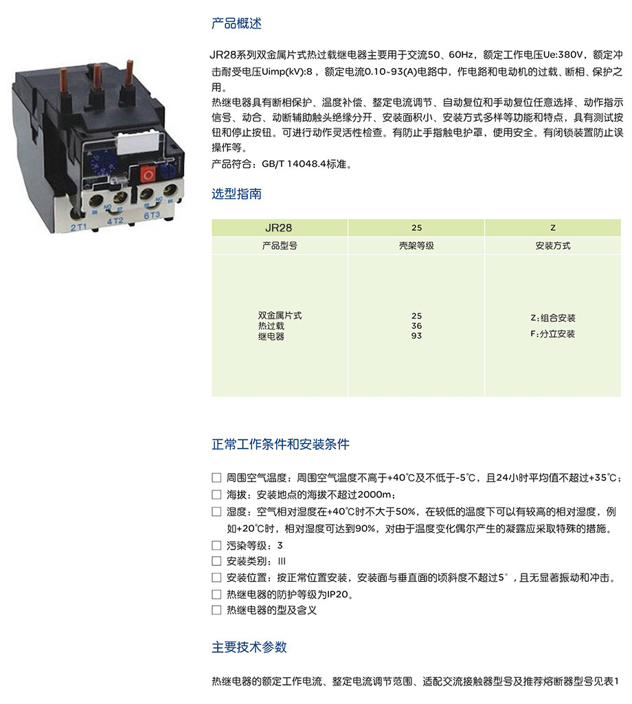 JR28系列熱過載繼電器產(chǎn)品說明書