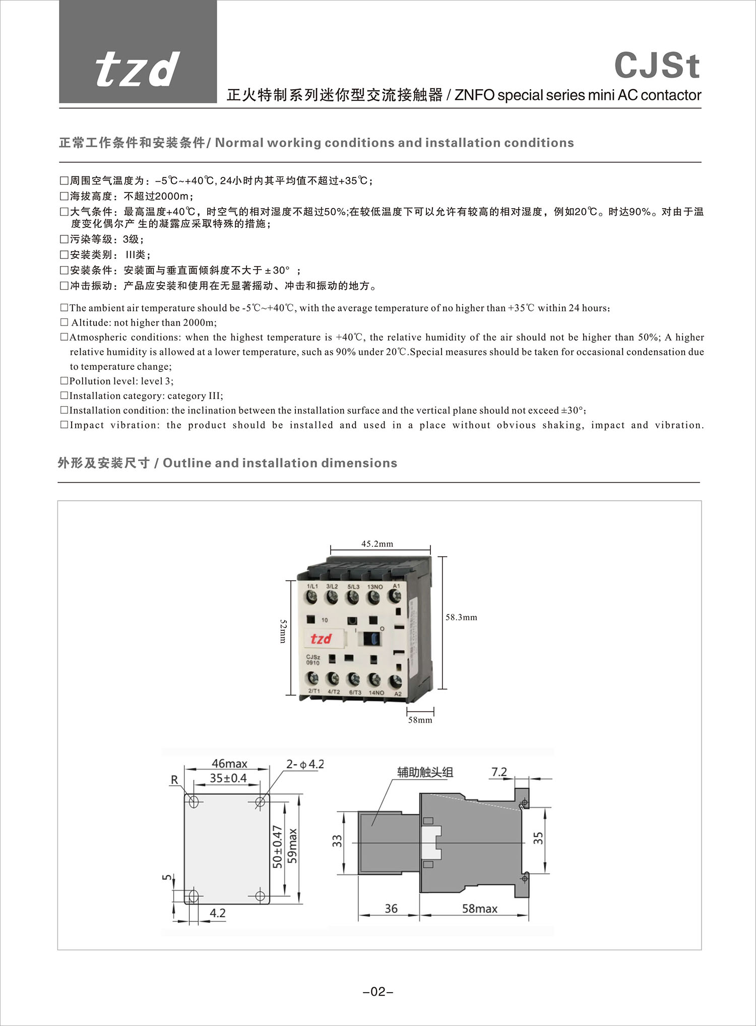 CJSt 正火特制系列迷你型交流接觸器產(chǎn)品說明書