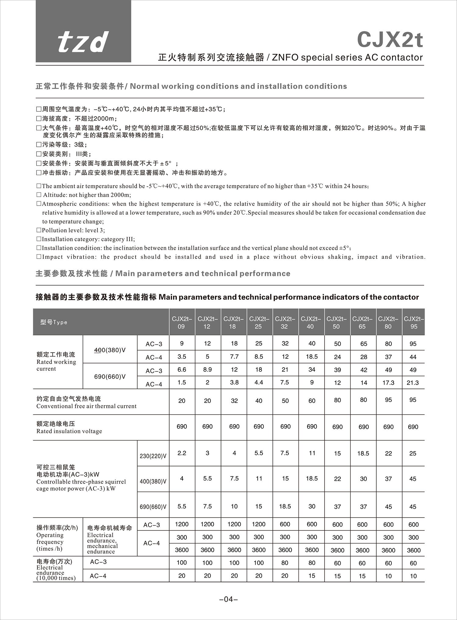 CJX2t 正火特制系列交流接觸器產(chǎn)品說明書