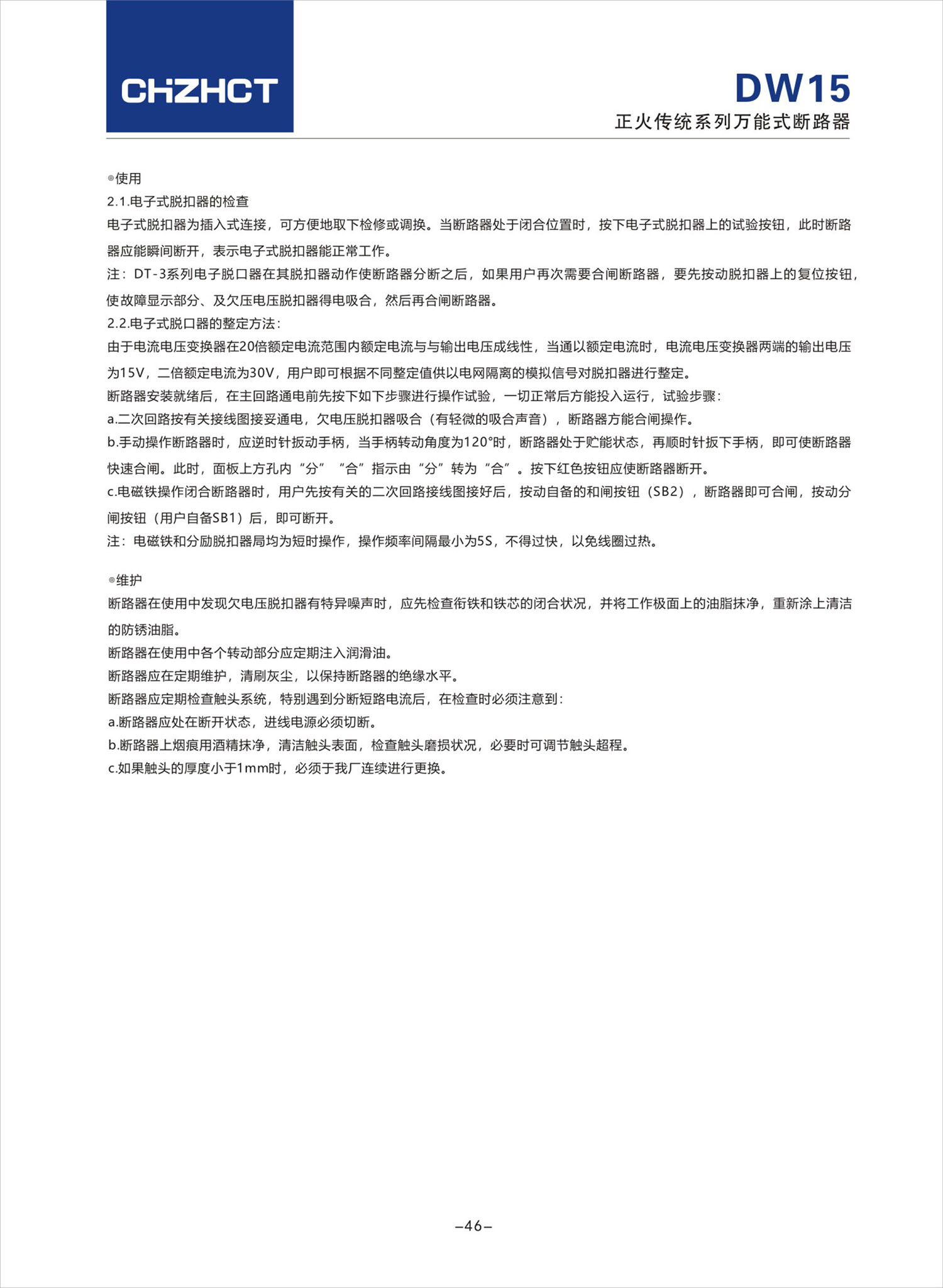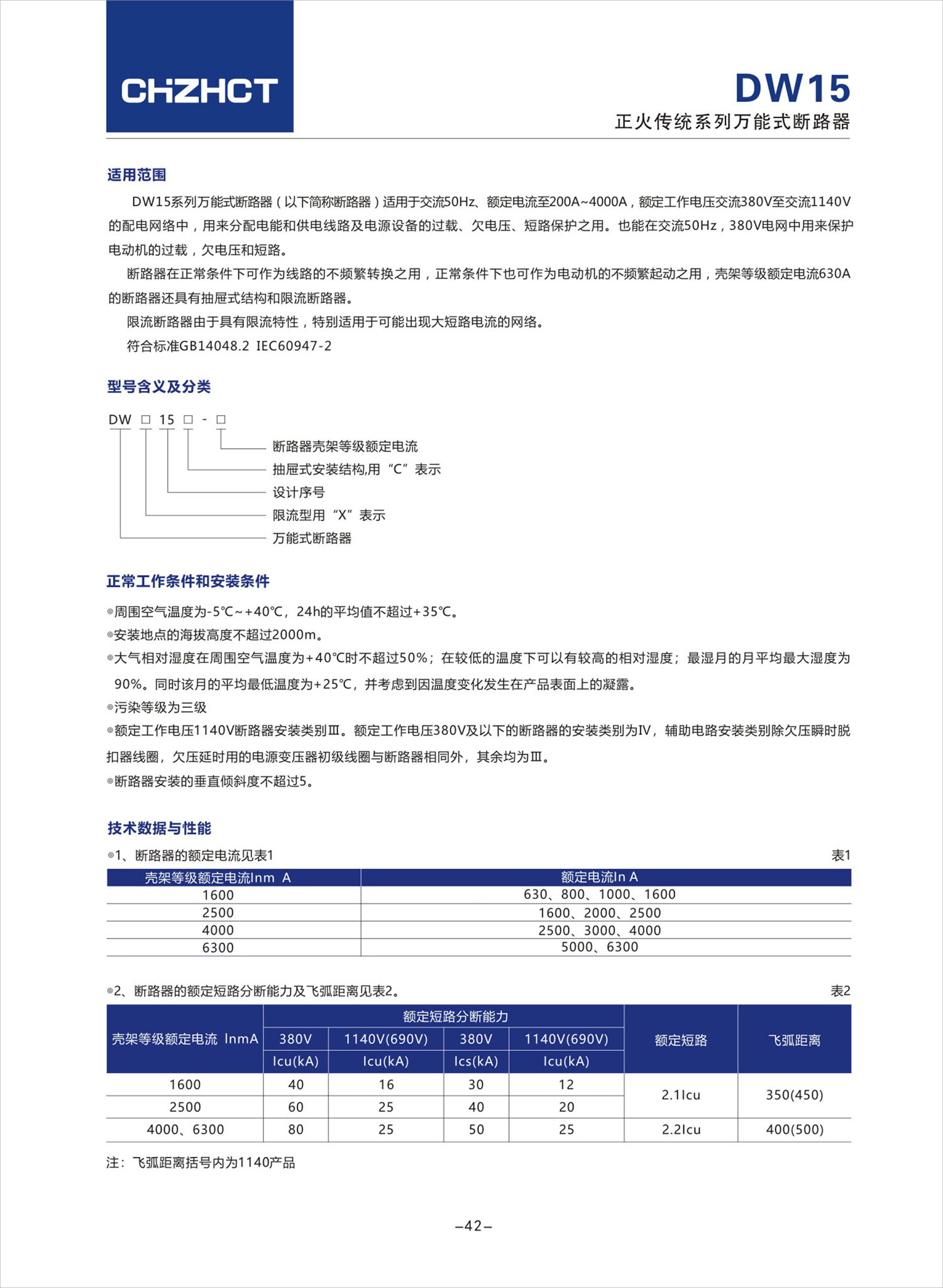 DW15 系列萬能式斷路器產(chǎn)品說明書