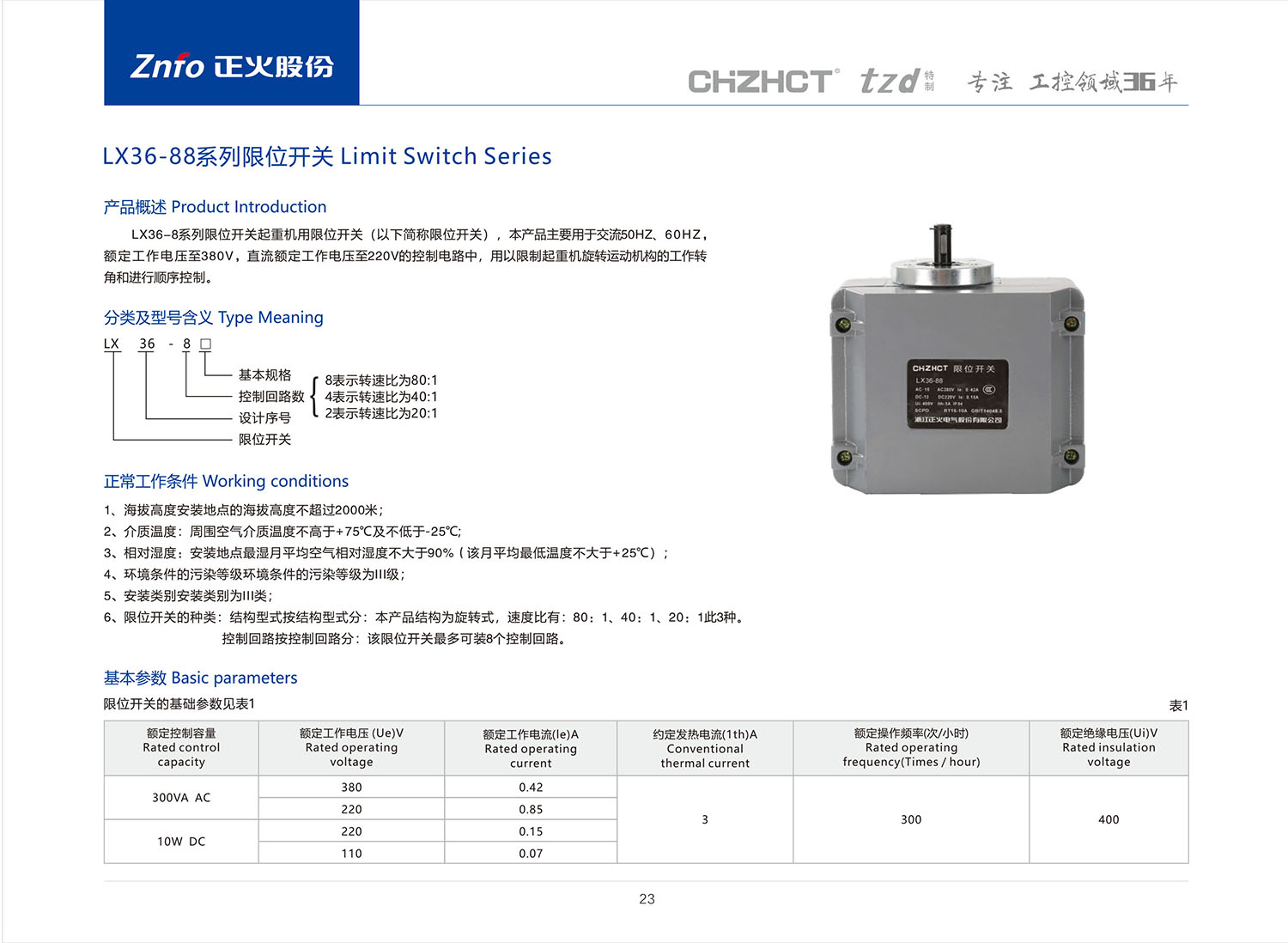 LX36-8系列限位開關(guān)產(chǎn)品說明書