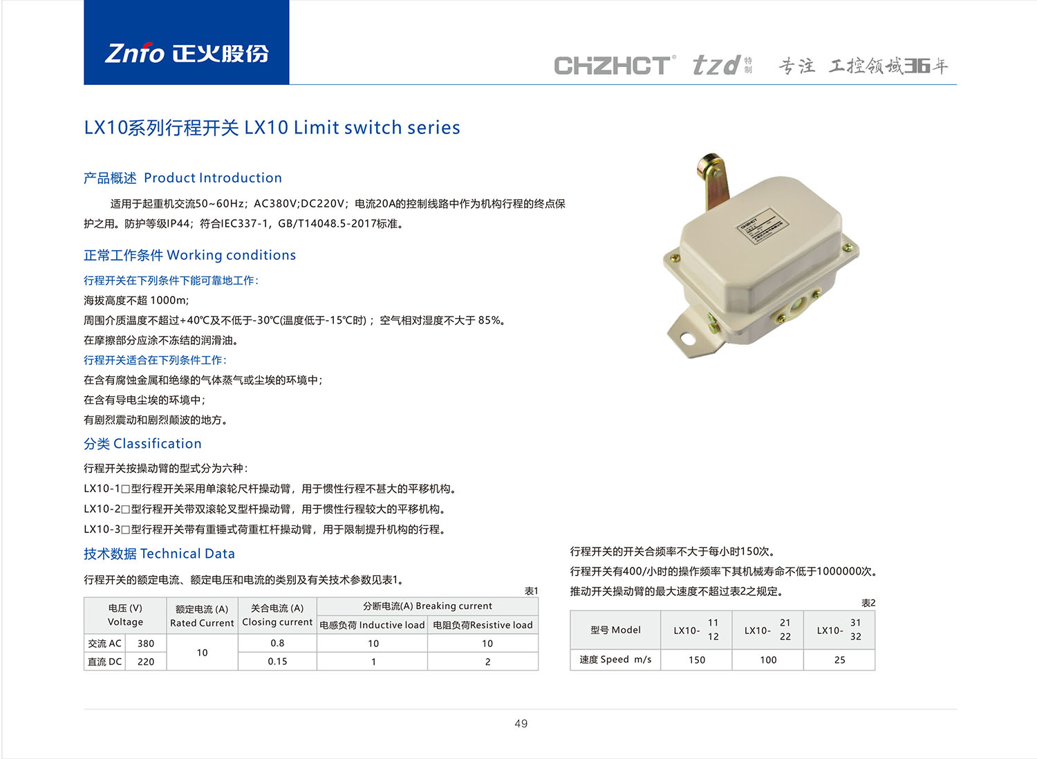 LX10系列行程開關(guān)產(chǎn)品說明書