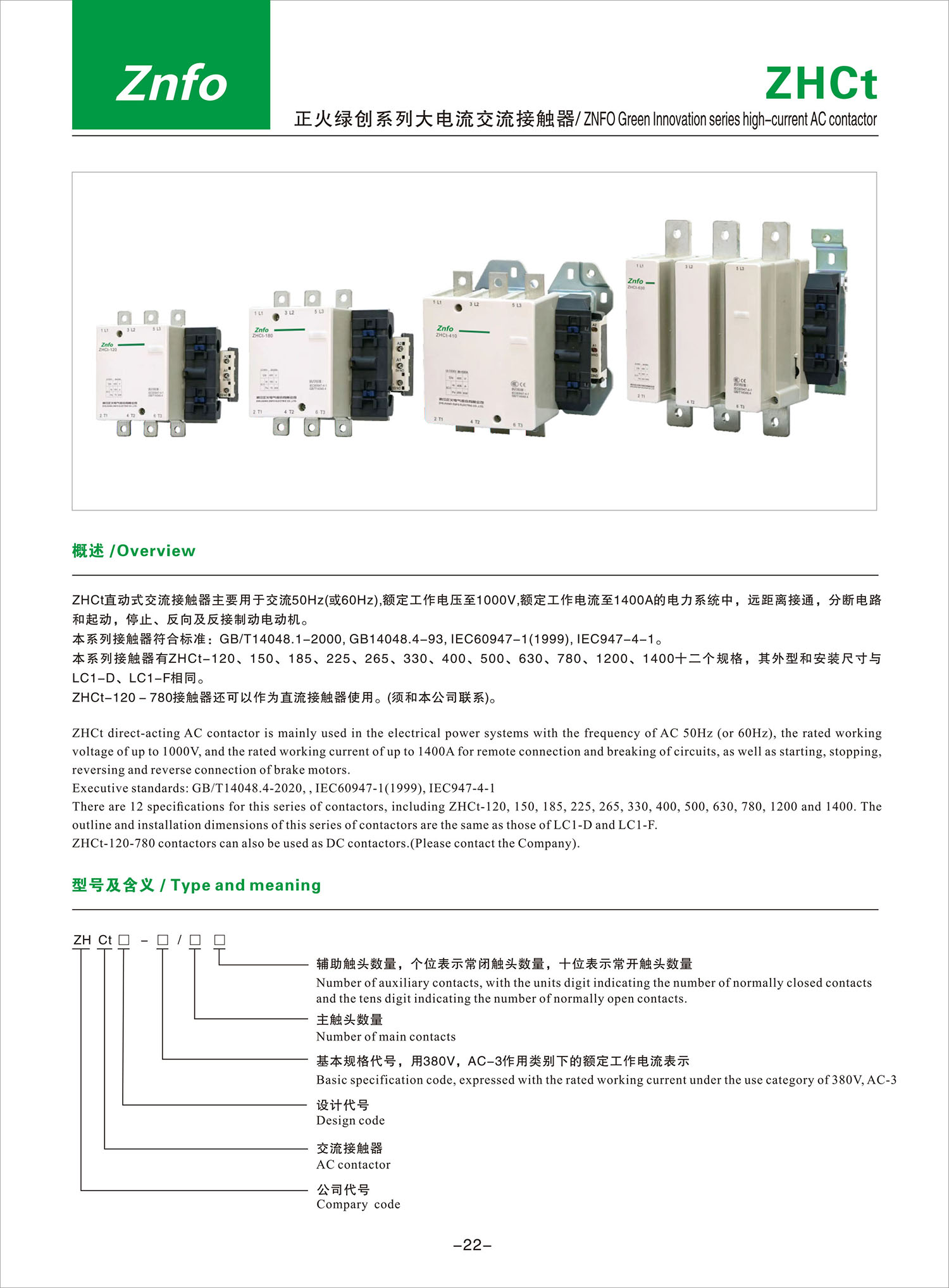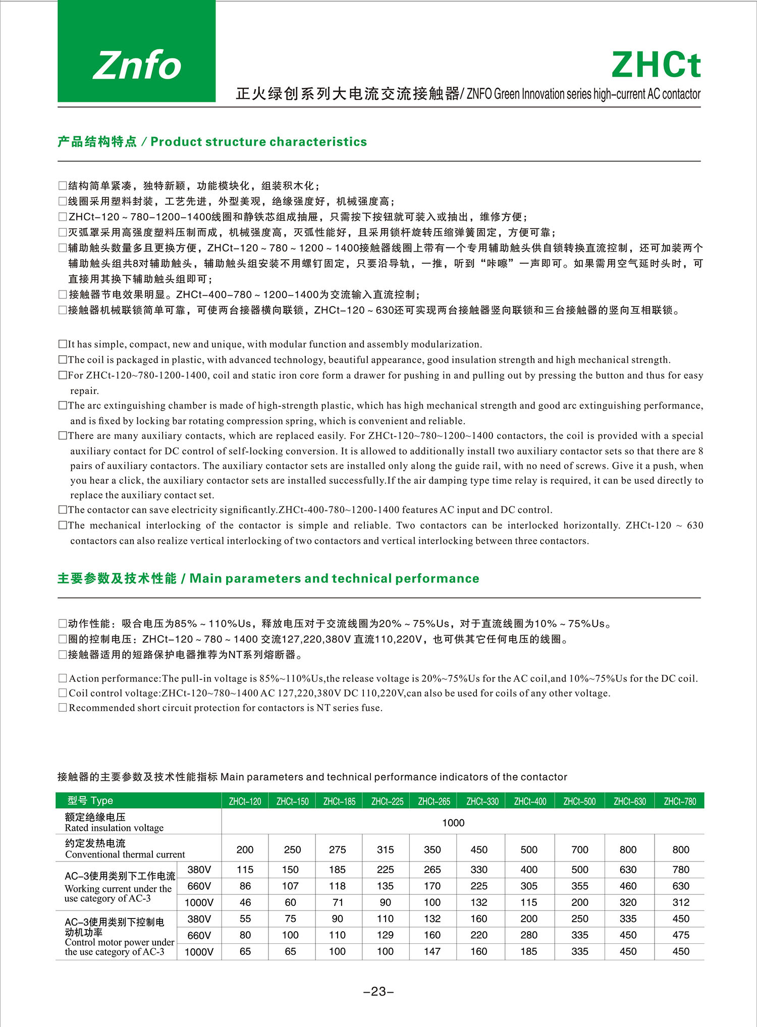 ZHCt 大電流接觸器產(chǎn)品說明書